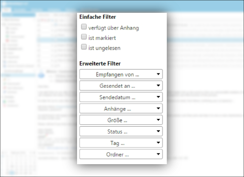 Es lassen sich nicht nur Nachrichten und Dateien durchsuchen, nein – planetarymail kann sogar Anhänge durchsuchen. Für eine Suche können Sie beliebig viele Parameter angeben.
